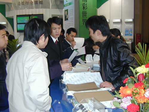 11月29日,由中國(guó)造紙協(xié)會(huì)舉辦的“2006年中國(guó)國(guó)際造紙及裝備博覽會(huì)暨2007年全國(guó)紙張訂貨交易會(huì)”進(jìn)入了最后一天,在這三天中,眾多印刷廠、物資單位和經(jīng)銷商紛紛與參展企業(yè)簽定了訂單意向書(shū)。