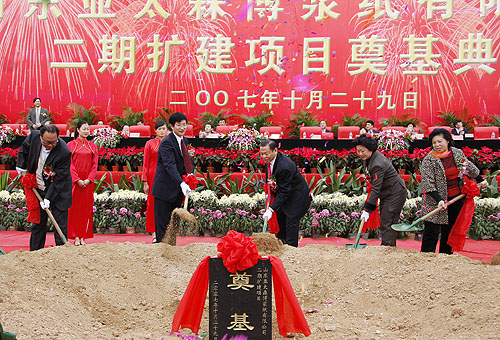 10月29日,山東亞太森博漿紙有限公司總投資113億元的二期工程——100萬噸木漿項目在日照奠基,項目建成后,將是目前世界上規(guī)模最大的紙漿生產(chǎn)線之一,加上第一期年產(chǎn)31.5萬噸的產(chǎn)能,亞太森博年產(chǎn)紙漿將超過130萬噸,這將使日照成為中國最大的紙漿生產(chǎn)基地。令人矚目的是,它不僅僅是山東省改革開放以來最大的利用外資項目,其環(huán)保投資也高達30億元,專家評價,各項環(huán)保指標將達到世界領(lǐng)先水準。