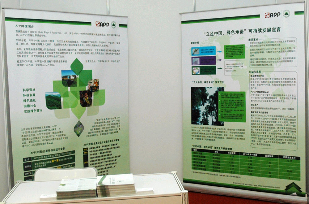 APP(中國(guó))的 “立足中國(guó) 綠色承諾”季度報(bào)告、“立足中國(guó) 綠色承諾”折頁(yè)和公司簡(jiǎn)介受到廣泛歡迎。行業(yè)協(xié)會(huì)、非政府組織、各參展環(huán)保機(jī)構(gòu)和企業(yè)等專業(yè)人士蒞臨公司展位,與公司代表廣泛交換意見(jiàn)。