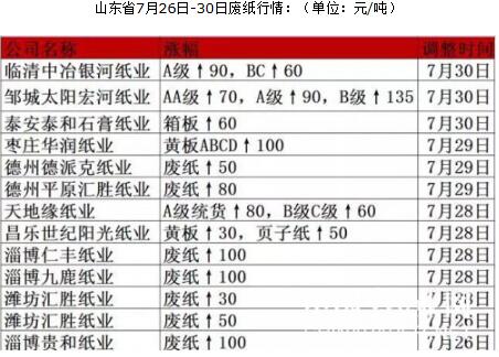 山東、浙江、河南、江蘇、廣東紙廠(chǎng)調(diào)價(jià),提漲100-200元/噸