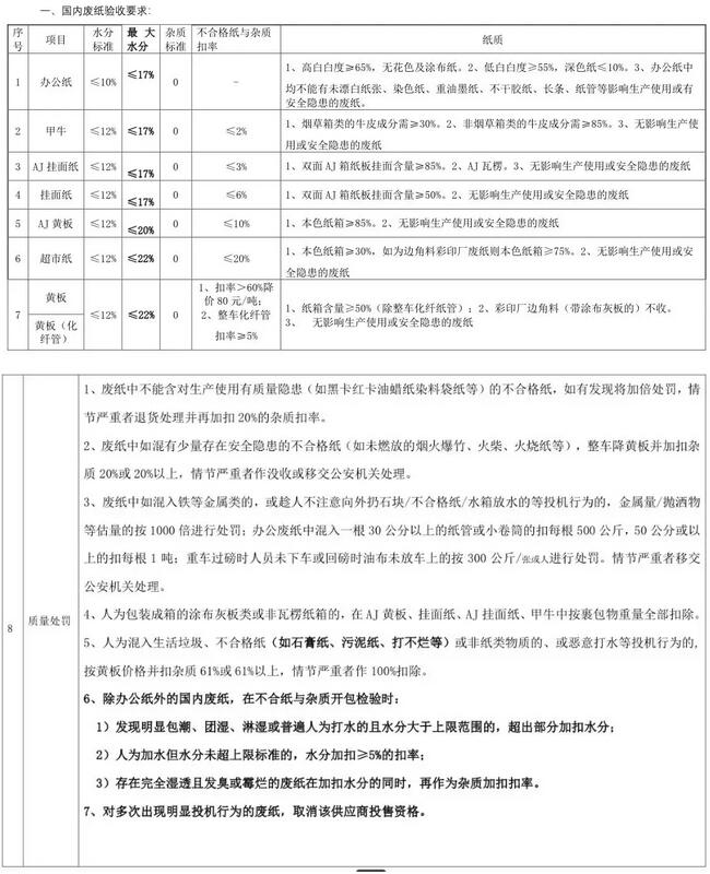 一、國(guó)內(nèi)廢紙驗(yàn)收要求