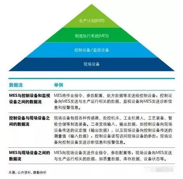 ▲ 受訪企業所關注的技術 工廠數字化 智能制造是以制造環節的智能化為核心,以端到端數據流為基礎,以數字作為核心驅動力,因此數字化工廠被企業列為智能制造部署的首要任務。目前企業數字化工廠部署以打通生產到執行的數據流為主要任務,而產品數據流和供應鏈數據流提升空間大。 數字化工廠通過新一代信息技術,實現 從設計、生產、物流和服務等各個環節的數據串連,加速決策,提高準確性。只有打通數據流才能實現基于實時數據變化,對生產過程進行分析和優化處理,進而實現業務流程、工藝流程和資金流程的協同,以及生產資源(材料、能源等)在企業內部及企業之間的動態配置。打通數據流也是工廠建立“數字孿生”的前提,數字孿生不僅指產品的數字化,也包含工廠本身和工藝流程及設備的數字化,從而實現全面追溯、物理與虛擬雙向共享和交互信息。 打通數據流主要包括三類數據的連通,即生產流程數據、產品數據以及供應鏈數據。 生產流程數據 打通生產流程數據除了從生產計劃到 執行的數據流(如ERP到MES), 還包括MES與控制設備和監視設備之間的數據流,現場設備與控制設備之間的數據流,以及MES與現場設備之間的數據流等。