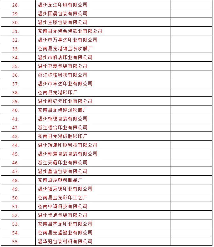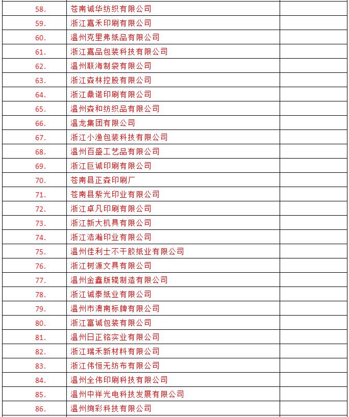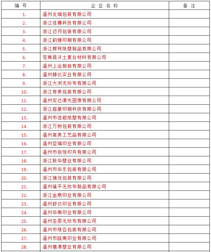 導語:截至2月18日,浙江省龍港市發布:規上印刷企業復工復產名單(72家);規上印刷企業復工復產已備案名單(87家);規下印刷企業已復工名單(55家);商貿(印刷)企業復工名單(12家)。具體名單如下: