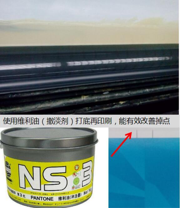 圖7:通過(guò)觀察印刷機(jī)的第一組橡皮布來(lái)初判掉點(diǎn)原因 05、印刷掉點(diǎn)改善措施 既然印刷掉點(diǎn)無(wú)法完全避免,紙毛紙屑在印刷過(guò)程中也是一個(gè)逐漸累積的過(guò)程,我們除了定期清洗橡皮布外(常規(guī)訂單建議5000張清洗一次),還有哪些方法能改善呢? 用優(yōu)質(zhì)棉布(不掉毛)擦拭紙張端面; 嚴(yán)控分切邊紙毛紙屑; 分切后再修邊; 印刷前先空壓一遍紙粉; 轉(zhuǎn)多色組印刷機(jī)第一色組先印維利油或撤淡劑再印刷其它顏色(注意油量不要太大,按對(duì)應(yīng)面積實(shí)地色墨量的30-40%即可);適當(dāng)降低油墨粘度,大墨位的顏色盡量放后面色組;專色采用2個(gè)色組疊印; 清洗水墨輥,墨斗,更換新墨