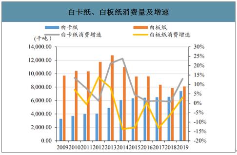 白卡紙、白板紙消費量及增速