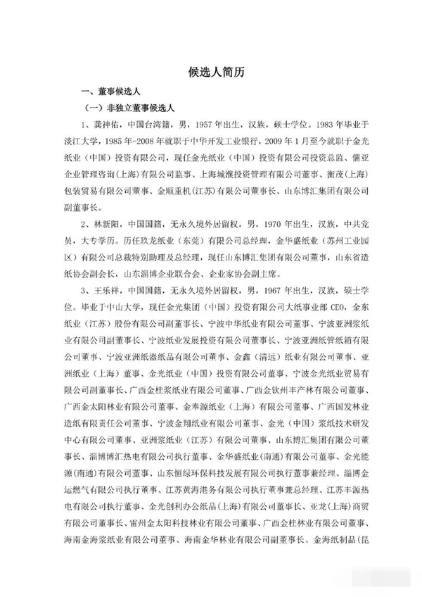 1、提名龔神佑先生、林新陽先生、王樂祥先生、于洋先生為公司第十屆董事會(huì)非獨(dú)立董事候選人。