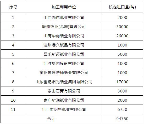 10月19日,環(huán)保部固體廢物與化學品管理技術中心公示了2020年第13批限制進口類產品明細,共有11家造紙企業(yè)獲批,總核定量9.475萬噸。截至目前,2020年總批準量達到674.8740萬噸,占2019年總量的62.77%。