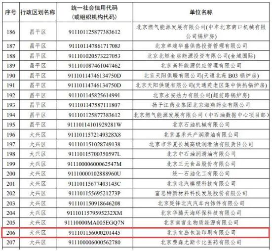 2021年北京市重點排污單位名錄發布 兩家印刷包裝企業在列