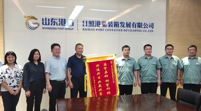8月12日下午,公司管理層王偉國、李潤明、朱暉一行專程來到山東港口日照港集裝箱發(fā)展有限公司,將一面題有“親望親好鄰望鄰好共建共生共贏共享”的錦旗贈予該公司。日照港集裝箱發(fā)展有限公司、日照海通班輪有限公司總經理秦曉代表日照港接受錦旗。