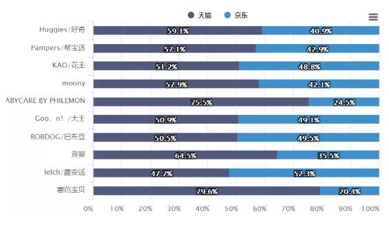 數據來源:Early Data 05、天貓成為尿褲頭部品牌主陣地 Babycare、Beaba增速迅猛 據愛魔鏡市場情報數據顯示,綜合天貓、京東兩大平臺,天貓顯而易見成為尿褲頭部品牌主陣地,好奇、幫寶適、花王等頭部外資品牌銷售額占比超出五成,而Babycare、Beaba兩個近年來增速迅猛的新銳品牌銷售額占比分別達75.5%、79.6%。