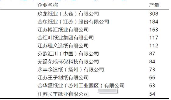 紙與紙板產量 2021年,江蘇機制紙及紙板總產量1528萬噸,首次突破1500萬噸大關,較2020年同比增長了3.5%。 其中,文化用紙生產量386萬噸,占全省機制紙及紙板總生產量的25.3%,比2020年的391萬噸減少1.3%;包裝用紙及紙板生產量為979萬噸,占全省機制紙及紙板總生產量的64.1%,比2020年的931萬噸增長5.2%。生活用紙生產量143萬噸,占全省機制紙及紙板生產量的9.4%,比2020年的141萬噸增長1.4%;特種紙及紙板生產量為20萬噸,包括無碳復寫紙、防偽票證紙、熱敏紙、紙杯原紙、三濾紙、蚊香片紙、箱包紙板、鞋底紙板等,占全省機制紙及紙板總生產量的1.3%,比2020年的14萬噸增長42.9%。 纖維原料結構 2021年江蘇省紙漿總用量1217萬噸,比2020年的1185萬噸增長2.7%。木漿、廢紙漿、非木漿原料結構分別占38.3%、61.2%、0.5%。 其中:木漿用量466萬噸,比2020年的476萬噸減少2.1%,占總用漿量的38.3 %,比2020年的40.2%減少了1.9個百分點。廢紙漿用量745萬噸,比2020年的700萬噸增長6.4%,占總用漿量的61.2%,比2020年的59.1%增長了2.1個百分點。非木漿用量6萬噸,比2020年的9萬噸減少33.3%,占總用漿量的0.5%,比2020年的0.7%減少了0.2個百分點。 主要經濟指標 據江蘇省造紙行業協會統計,2021年江蘇省造紙工業總計完成工業總產值736億元,比2020年的665億元增長10.7%;實現銷售收入753億元,比2020年的673億元增長11.9%;上繳稅金31億元,比2020年的25億元增長24.0%;實現利潤87億元,比2020年的55億元增長58.2%(利潤大幅增長主要原因是企業搬遷補償以及新增產能投產止損為盈,除去以上因素利潤增長9.1%)。全省虧損制漿造紙企業共3家。 大中型造紙企業的市場份額穩中向好 2021年中國經濟發展穩中向好,不斷拉動對紙張的需求,行業景氣度持續提升。10萬噸以上的大中型造紙企業合計產量達到1425萬噸,占全省造紙總生產量的96.3%,與2020年的1422萬噸基本持平。其中,年產量50萬噸以上的大型造紙企業2021年合計產量達到1245萬噸,占全省造紙總生產量的81.5%,與2020年1245萬噸持平。2021年全省大中型造紙企業的平均規模達到67.8萬噸,與2020年67.7萬噸相比基本持平。 規模企業概況 2021年產量達到10萬噸的造紙企業共20家,產量在50萬噸以上的企業有如表1所示的11家。 年產200萬噸以上規模企業1家;年產100萬~200萬噸規模企業4家;年產50萬~100萬噸規模企業6家;年產10萬~50萬噸規模企業9家。 表1 產量達50萬噸以上的江蘇造紙企業(產量:萬噸)