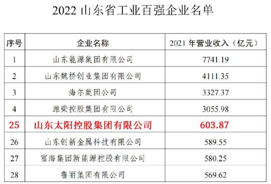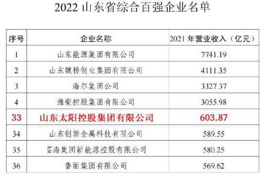 12月2日,山東省工業和信息化廳、省企業聯合會公布了2022山東企業百強名單,名單又分為綜合百強企業和工業百強企業,太陽紙業控股股東山東太陽控股集團有限公司分別位列2022山東省綜合百強企業第33位、2022山東省工業百強企業第25位,彰顯了企業的綜合實力和影響力。