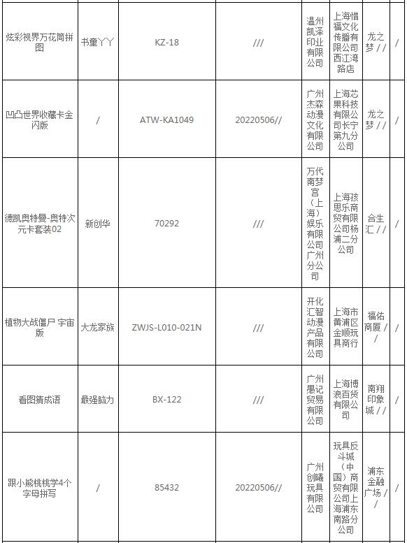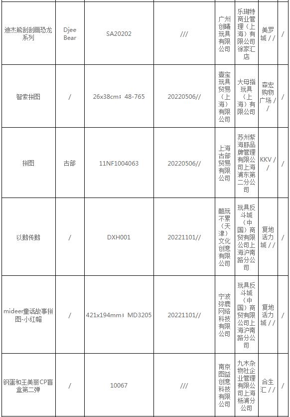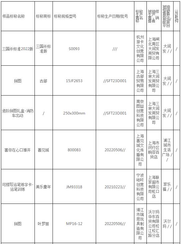 2023年上海市紙制玩具產品質量監督抽查所檢項目符合相關標準的產品
