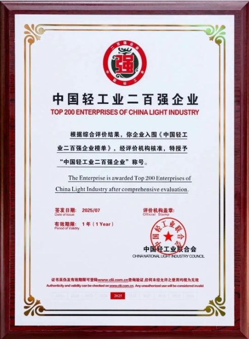 中國(guó)輕工業(yè)聯(lián)合會(huì)本著嚴(yán)謹(jǐn)、公正、科學(xué)的原則,通過(guò)對(duì)申報(bào)企業(yè)2024年度營(yíng)業(yè)收入、利潤(rùn)總額、利稅總額、科技研發(fā)投入及專利數(shù)量等指標(biāo)進(jìn)行統(tǒng)計(jì),按統(tǒng)一標(biāo)準(zhǔn)體系進(jìn)行評(píng)定并發(fā)布了2024年度中國(guó)輕工業(yè)二百?gòu)?qiáng)企業(yè)、行業(yè)十強(qiáng)企業(yè)等名單。