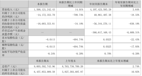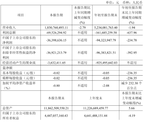 冠豪高新(600433) 公司實現營業總收入52.34億元,同比下降1.94%;歸母凈利潤虧損9432.39萬元,上年同期盈利6998.55萬元。