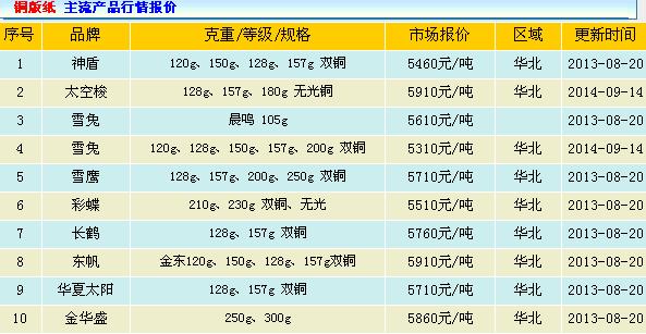 紙業觀察網的紙業價格行情是中國造紙行業領先的價格行情欄目,自2002年推出以來,已經積累了大量的數據,以其全面、權威為業內所公認。紙業觀察網行情欄目主要內容有: