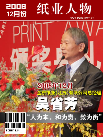 吳省芳,金東紙業(yè)(江蘇)有限公司總經(jīng)理,“人為本,和為貴,斂為衡”是吳省芳的管理理念和處世原則。